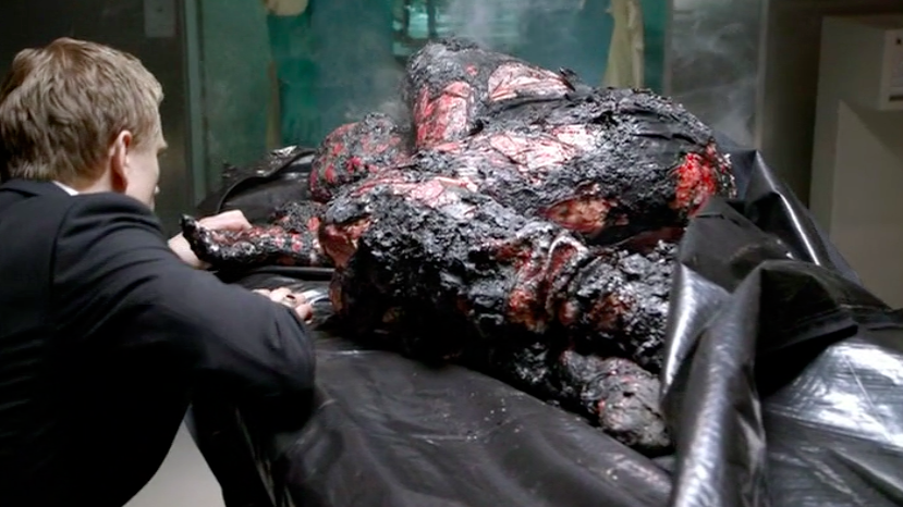 And while I don’t know how Marcus knew where the assassins could find Blade, the show does explain how Marcus knew to send them in the first place. Congratulations to the screenwriters, you fooled me. Last episode I bemoaned the death of sexy, fun vampire Chase (Jessica Gower) in a lackluster explosion. Silly me to think a raging fire could kill such a character, as she is found burned but undead, and sent back to Detroit. I would however like to know how she’s sent back to Detroit, as when she’s delivered to the House of Chthon’s medical wing she is still smoking from the fire. Now, Blade had to fly (presumably coach, vampire hunting doesn’t pay well I’d assume) almost 16 hours, not counting layovers, from Detroit to Berlin. Yet somehow Chase’s burned body gets from Berlin to Detroit while still smoldering. Okay, let’s move on.