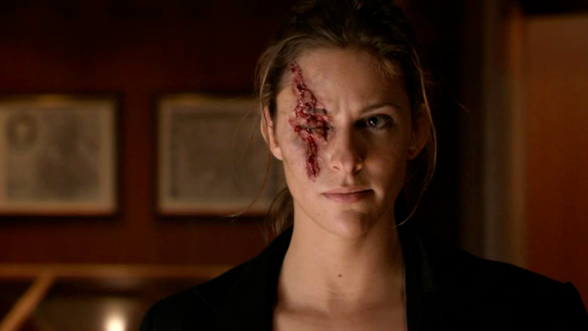 One great twist comes when Krista realizes she can’t return to Marcus without suspicion. She has Blade cut her face with his sword, take out one of her eyes, and also mutilate her hand. It’s a great touch that I didn’t see coming, even if it does lack weight since we know she will heal by next episode.