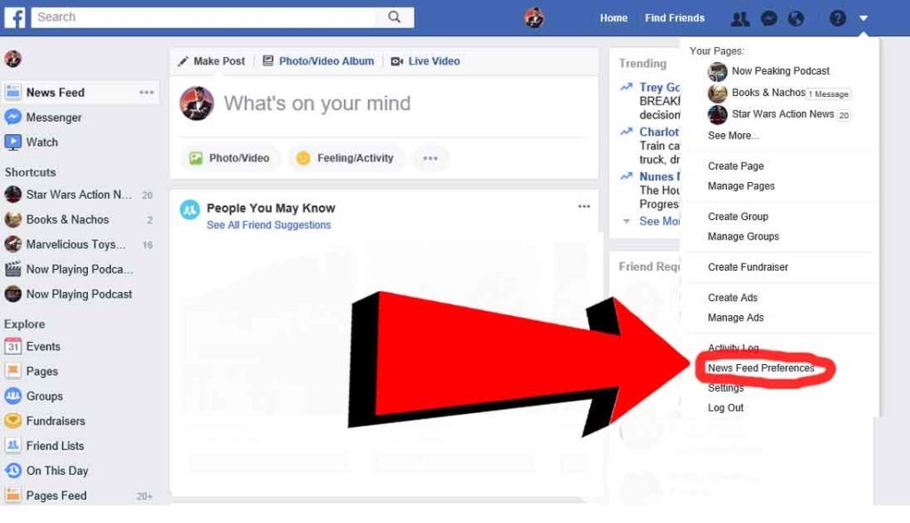 3. Click on “Now Playing Podcast” and any other pages you want to remain in your newsfeed