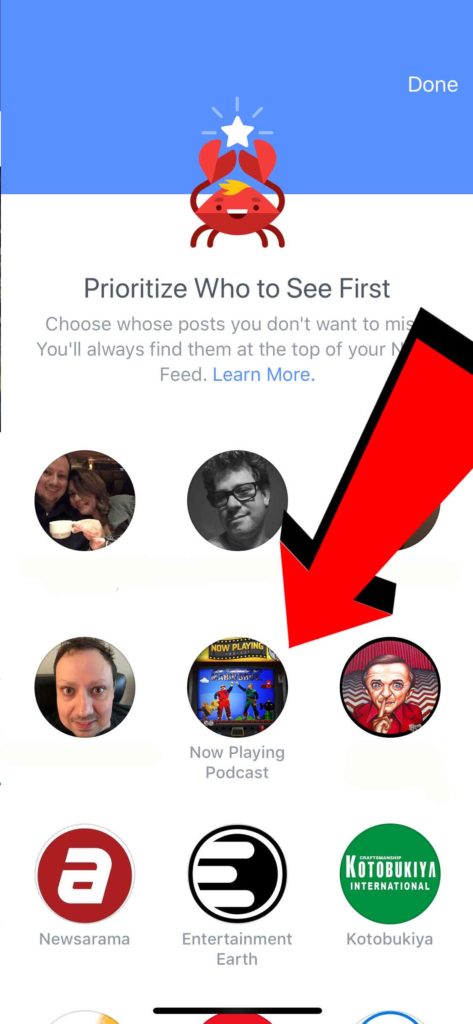But there is a way to keep your favorite Pages (like Now Playing Podcast) in your feed. Here’s instructions how to do it on iPhone, Android, and Desktop: